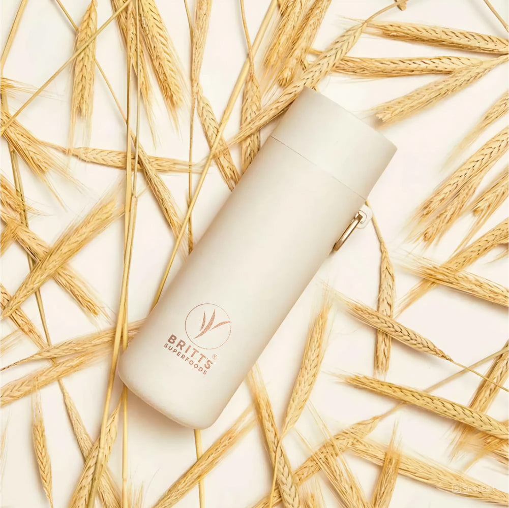 Elevate your hydration with the first-ever Britt's Superfood drinking bottle in partnership with S'Wheat. Our Reusable Plant-Based Bottle is crafted from renewable wheat-based materials. Say goodbye to single-use plastics and hello to a sustainable future with a bottle that makes a statement.